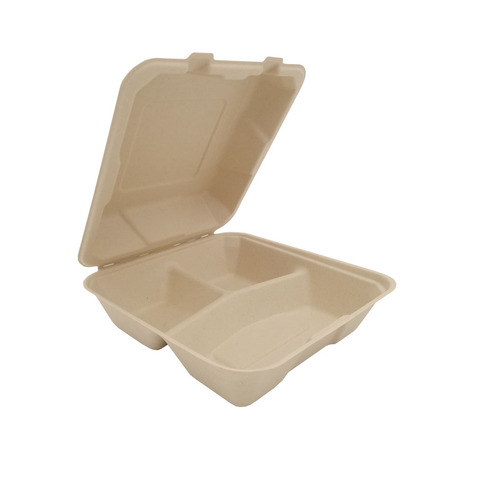 حاوية طعام قصب السكر القابلة للتحلل الحيوي 8 بوصة 3 مقصورة
